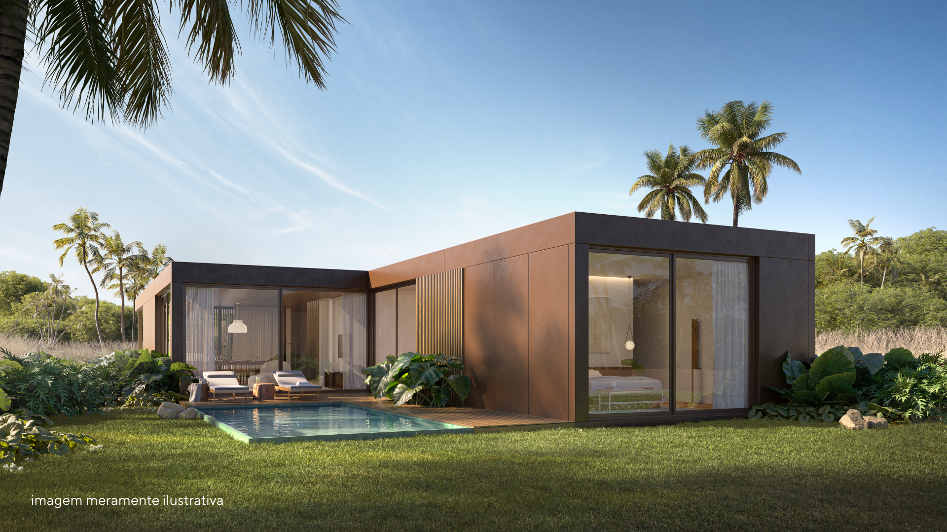 No Porto Belo Golf All Resort, você tem a opção de comprar uma casa pronta sem precisar se envolver com a obra, construída com a inovadora tecnologia sysHaus e com a coordenação do arquiteto Roberto Cabariti.