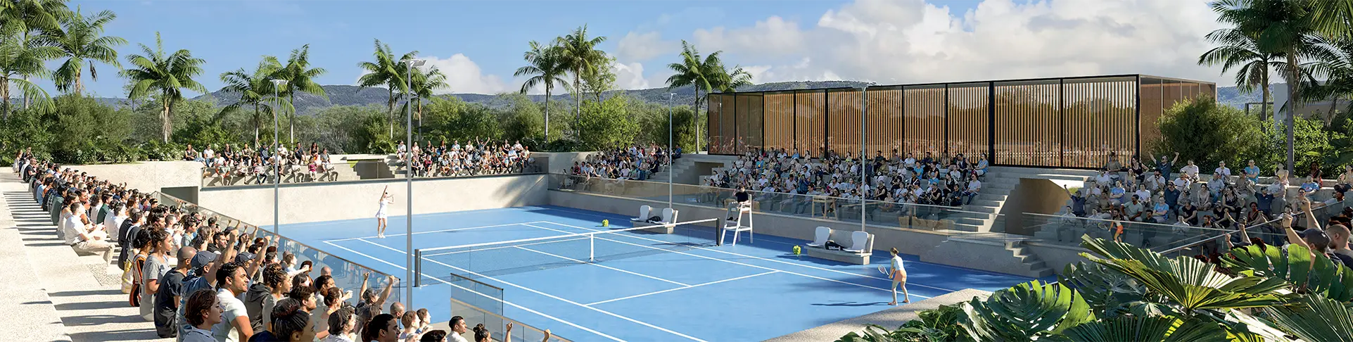 Um complexo de tênis de alto nível, projetado para proporcionar a melhor experiência para atletas e entusiastas do esporte. Equipado com quadras de padrão internacional, o espaço conta com infraestrutura completa, incluindo iluminação de última geração. Com um design inovador e tecnologia de ponta, este é um espaço que combina conforto, funcionalidade e excelência esportiva, elevando o tênis a um novo patamar.